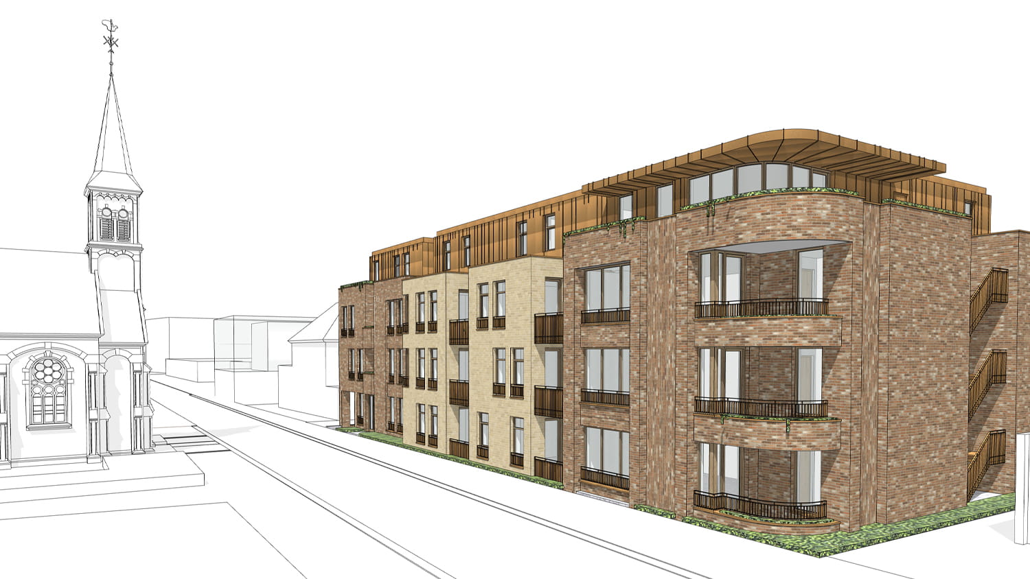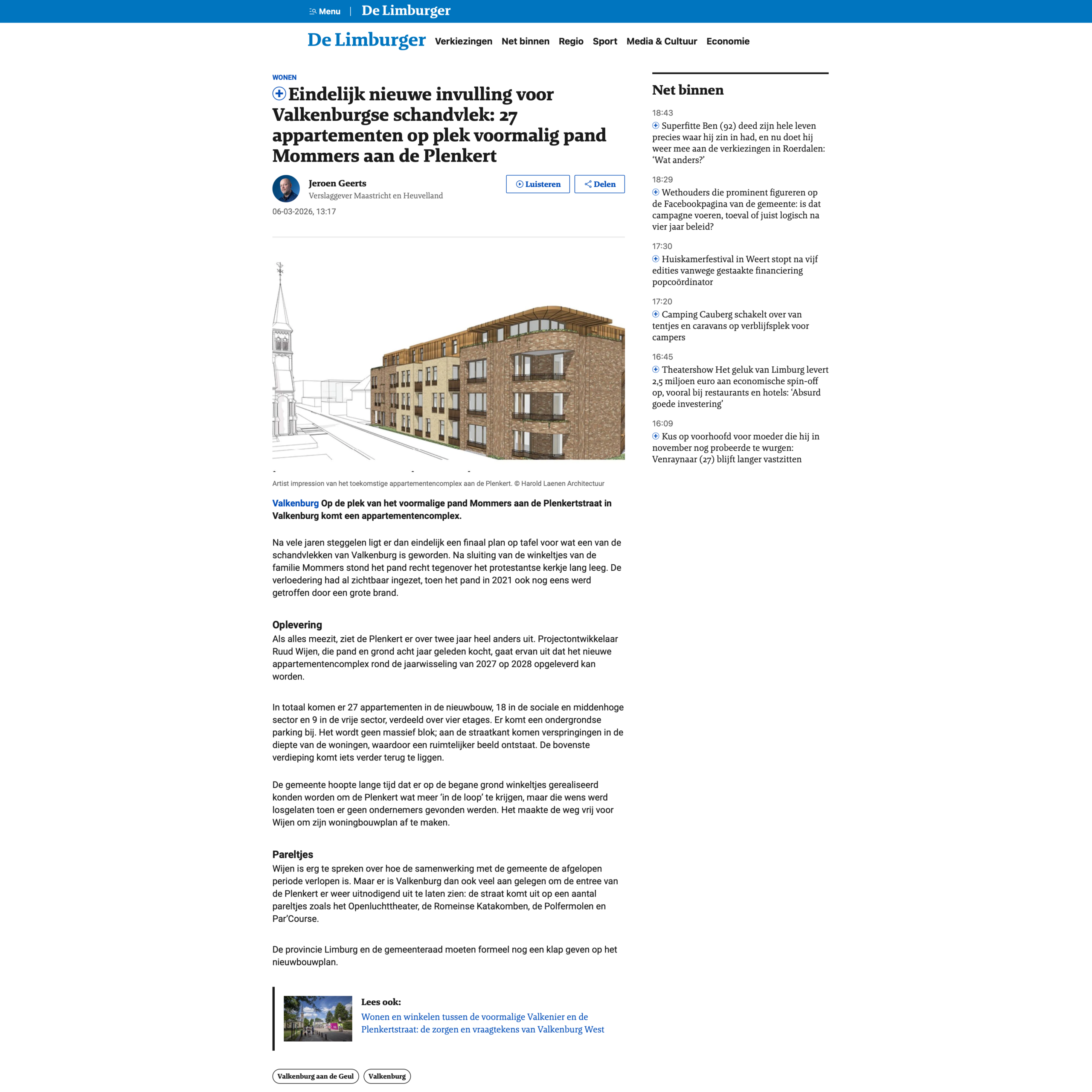 Herontwikkeling van locatie waar vroegere winkels van familie Mommers waren gevestigd naar 27 nieuwbouw appartementen met parkeergelegenheid.